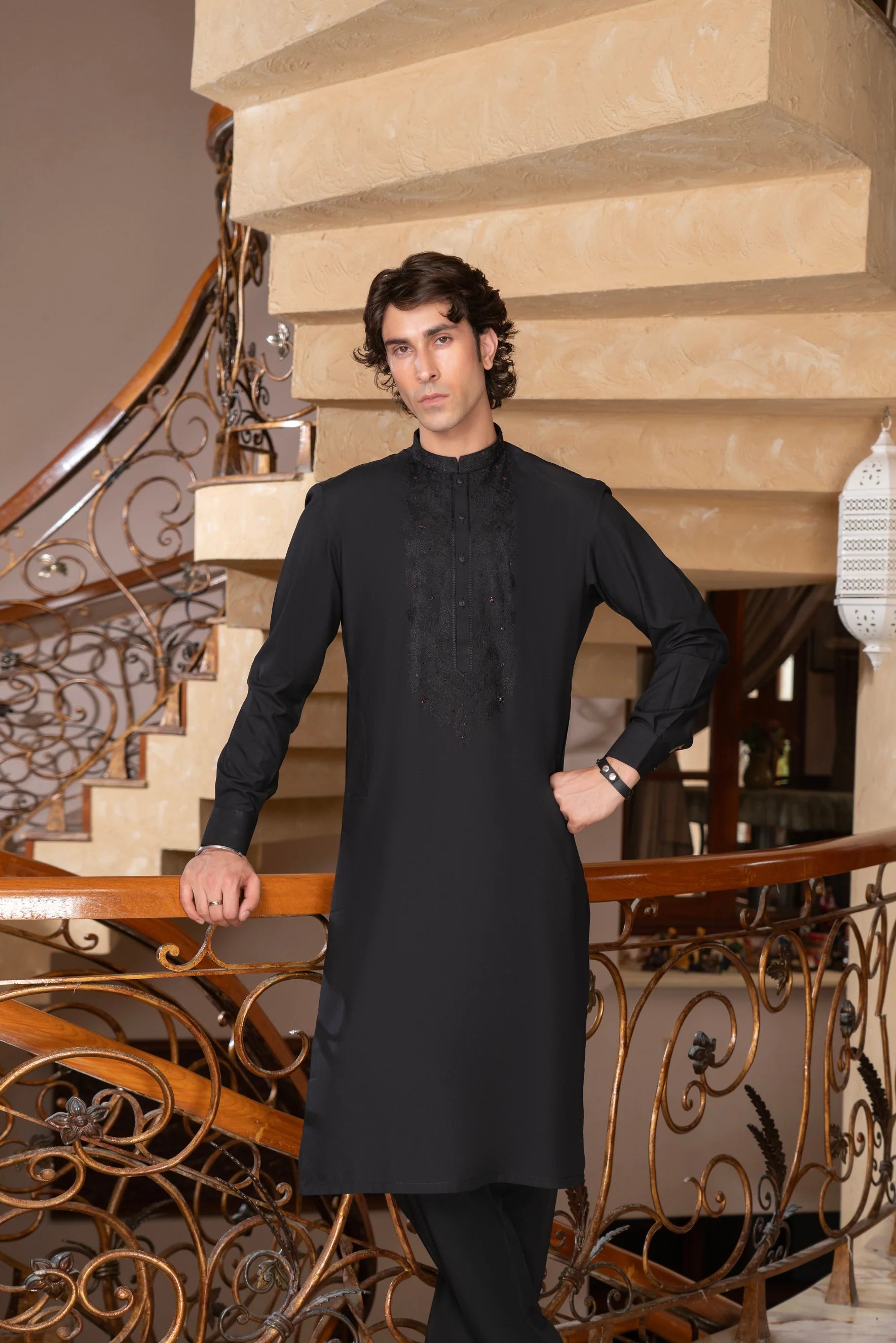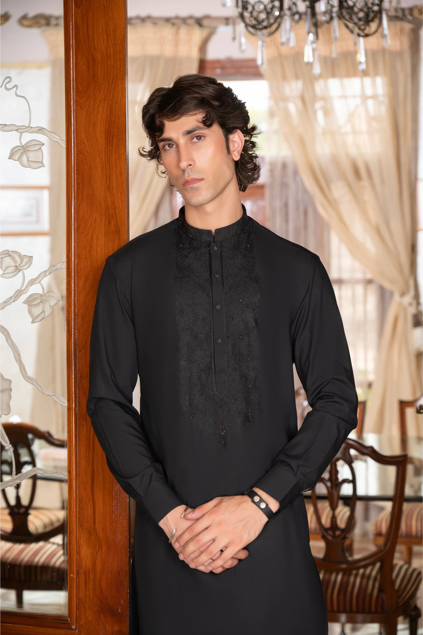 ✅ Elegant Embroidery – on front, sleeves & borders